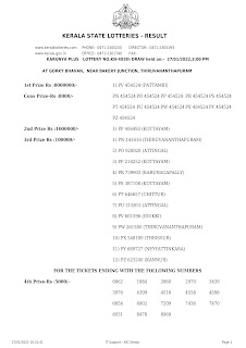 3rd Price – Rs. 1,00,000/-PN 141616 (THIRUVANANTHAPURAM) PO 928028 (ATTINGAL) PP 218252 (KOTTAYAM) PR 739903 (KARUNAGAPALLY) PS 387108 (KOTTAYAM) PT 646657 (CHITTUR) PU 315815 (ATTINGAL) PV 601596 (IDUKKI) PW 261580 (THIRUVANANTHAPURAM) PX 548189 (THRISSUR) PY 689727 (NEYYATTINKARA) PZ 623240 (KANNUR)